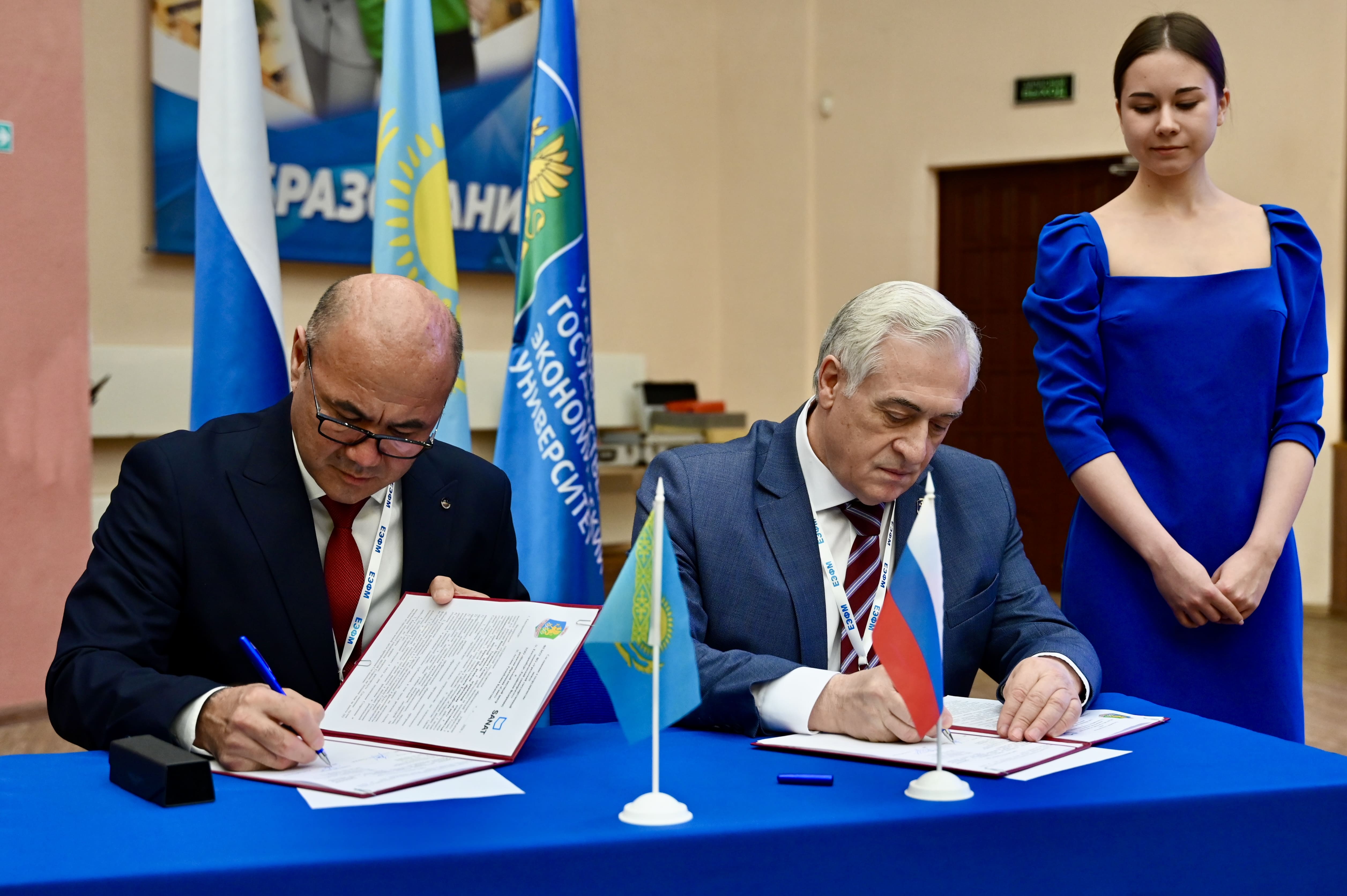 В рамках встречи состоялось официальное подписание двусторонних соглашений между УрГЭУ и Национальным научным Центром развития образования «САНАТ» (г. Астана, Казахстан). Свои подписи в документе поставили и.о. ректора УрГЭУ Яков Силин и директор Центра Берик Елмагамбетов. И это еще одно подтверждение того, что с каждым годом растет количество стран, готовых к сотрудничеству с Россией.