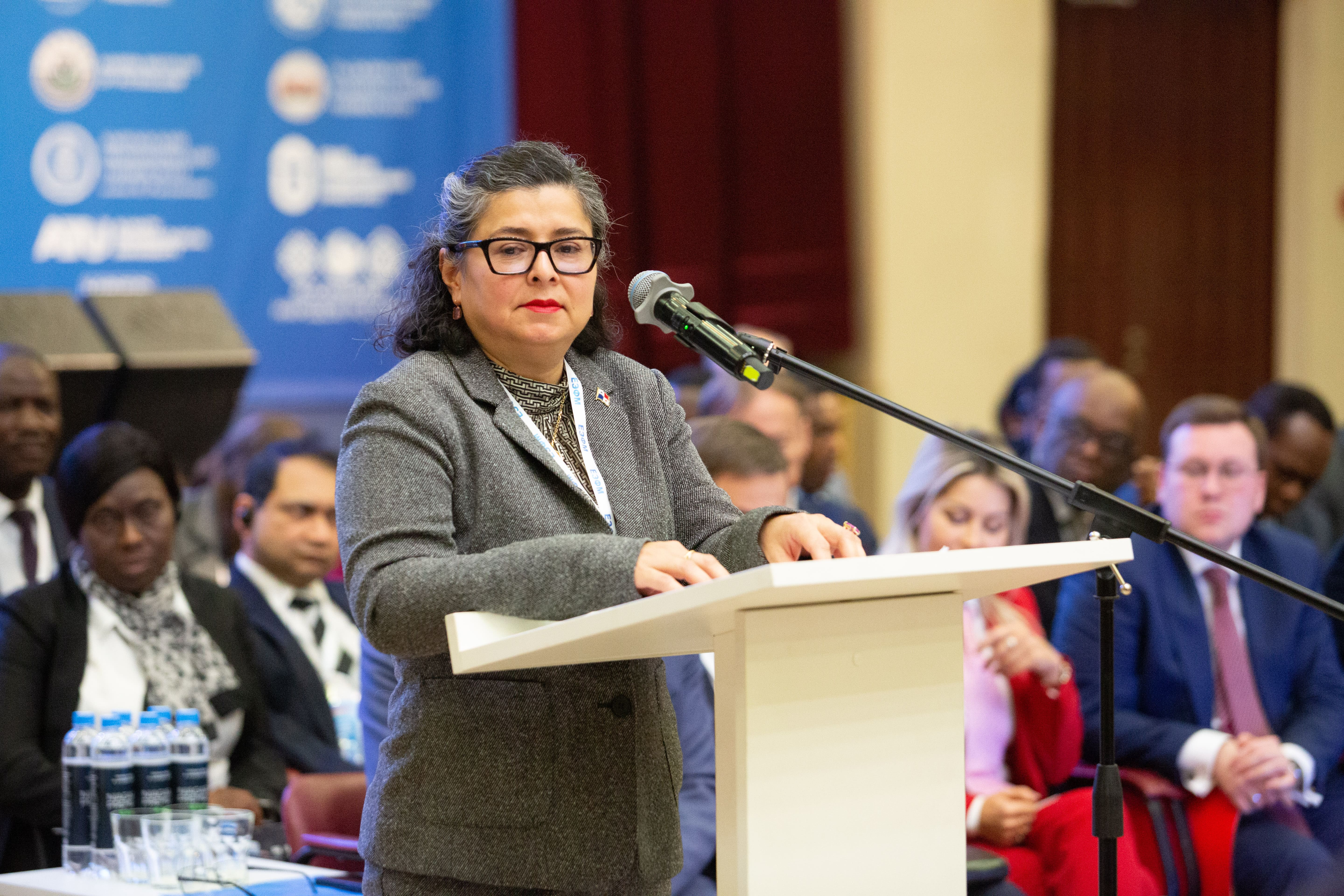 Приветствовала участников встречи Чрезвычайный и Полномочный Посол Республики Панама Кармен Инес Авила Ортега: «Для Панамы большая честь участвовать в XVI Евразийском экономическом форуме, организованном Уральским государственным экономическим университетом. Очень здорово, что у нас есть возможность обмениваться здесь идеями, а также, чтобы ими обменивались студенты, власть, участники форума и представители предприятий. Будущее за молодыми людьми, и мы должны построить фундамент, который дальше будет развивать молодежь и жить в диалоге и согласии. Международное сотрудничество очень важно для дальнейшего развития, ведь таким образом создаются планы на будущее».