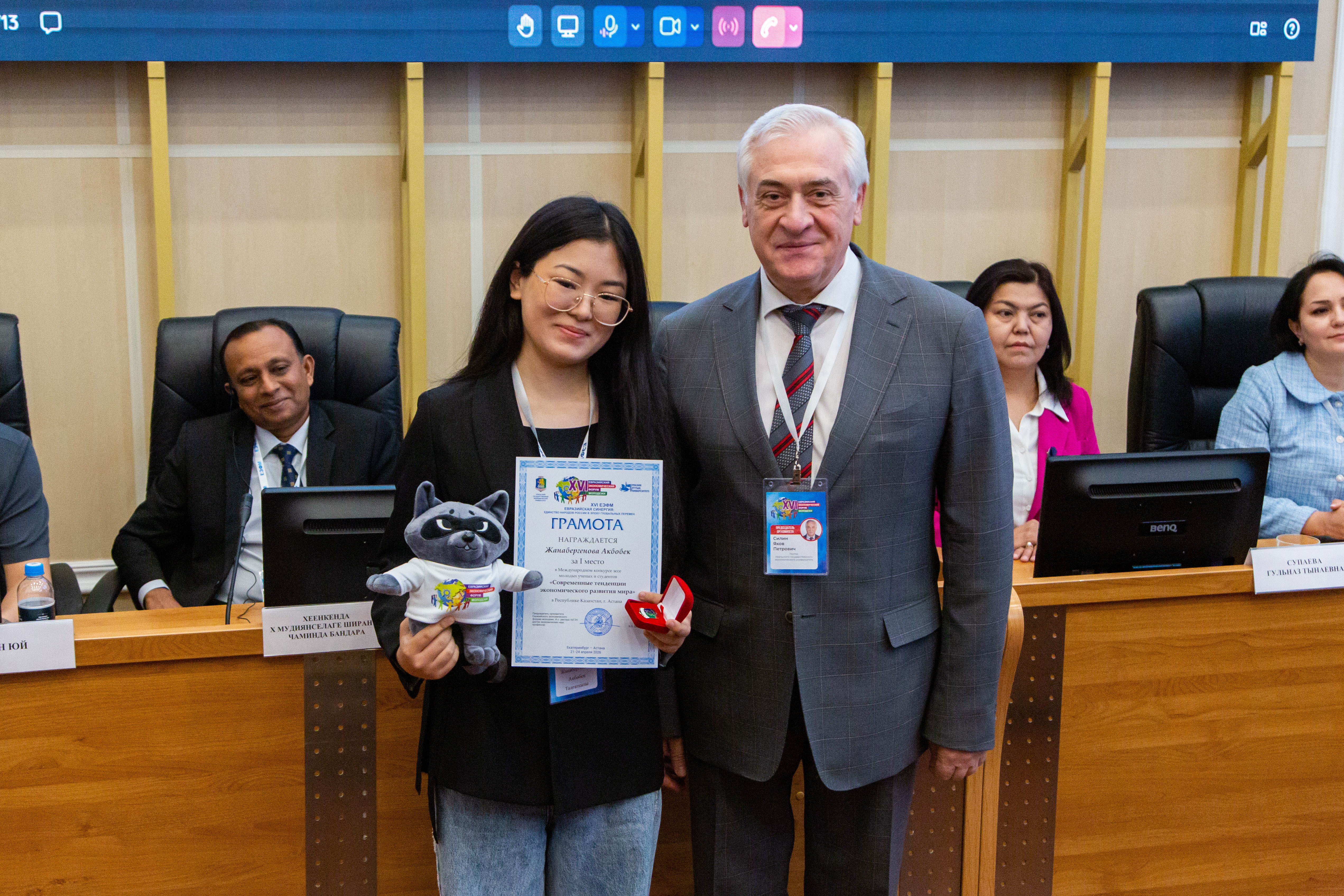 На площадке Республики Казахстан в Астане в Международной олимпиаде научных работ молодежи «Инновационная Евразия» лучшим признан Нариман Онгарбаев. В Международном конкурсе эссе молодых ученых и студентов «Современная экономическая теория и развитие общества: фундаментальные и междисциплинарные исследования» диплом вручен Рахману Закирьянову, в Международном конкурсе эссе «Современные тенденции экономического развития мира» лучшей стала Акбобек Жанабергенова.