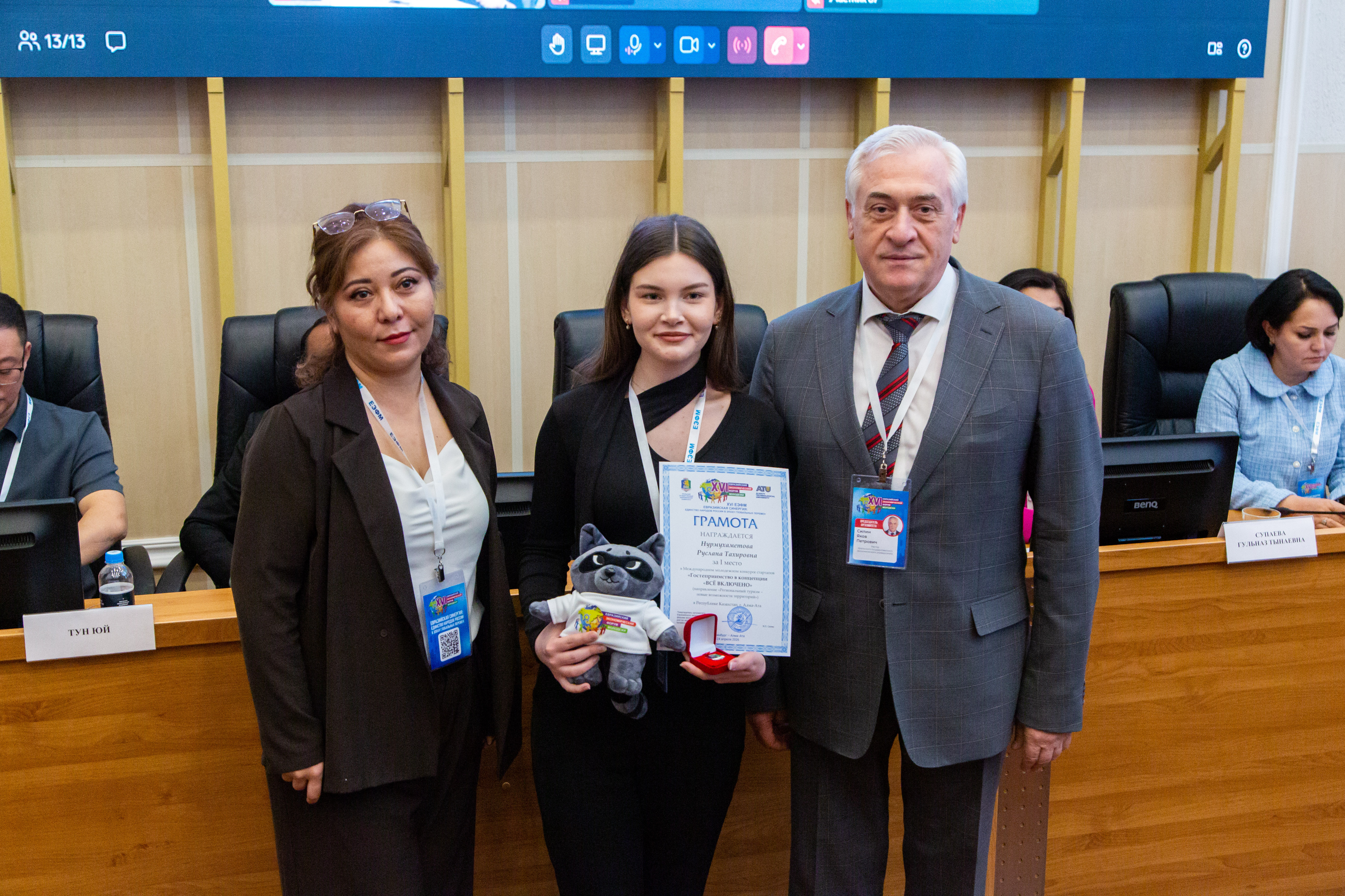 В Алма-Ате (Казахстан) дипломом победителя Международного молодежного конкурса стартапов «Гостеприимство в концепции «ВСЕ ВКЛЮЧЕНО» по направлению «Региональный туризм — новые возможности территорий» награждена Руслана Нурмухаметова. Марлену Сермагамбетову вручен диплом победителя Международного конкурса научно-исследовательских работ «Конкурентоспособность территорий», Нурсултану Халыкову — диплом победителя конкурса «Корпоративное управление, устойчивость бизнеса (ESG) и проекты развития», а Бейбарысу Касымбекову — звание победителя Международного молодежного конкурса научных статей «Современная экономическая теория и развитие общества: фундаментальные и междисциплинарные исследования».