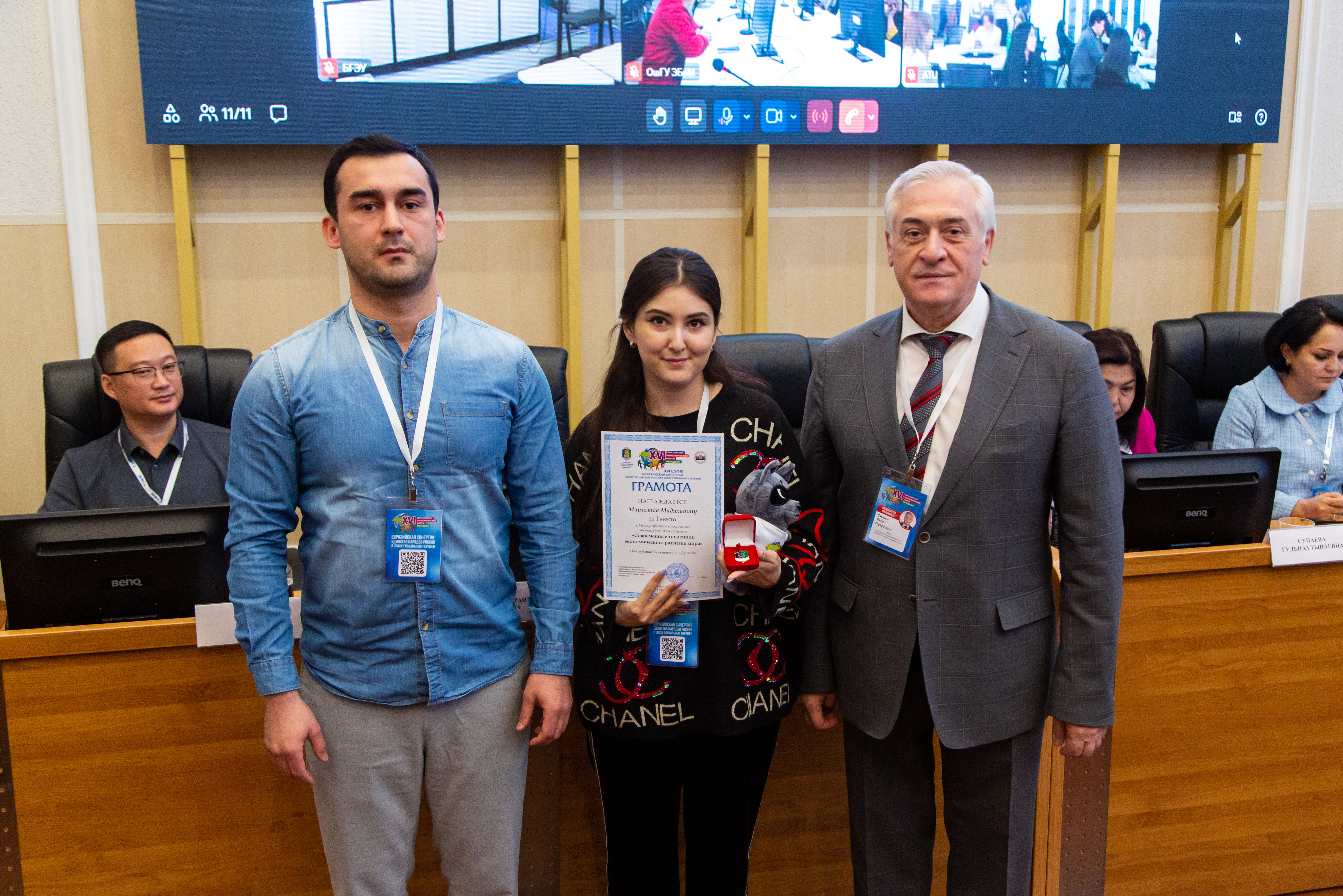 На площадке Республики Узбекистан Камран Рустамов признан победителем Международной олимпиады научных и прикладных работ молодежи «Инновационная Евразия». Элмурод Фозилов получил диплом Международного конкурса научно-исследовательских работ «Корпоративное управление, устойчивость бизнеса (ESG) и проекты развития». Баходир Исроилов и Самира Кодирова стали победителями Международного конкурса прикладных проектов «Прикладные ИТ-решения в науке, бизнесе и власти», а Абдуфаттох Равшанов — Международного конкурса прикладных проектов «Город: Open the future».